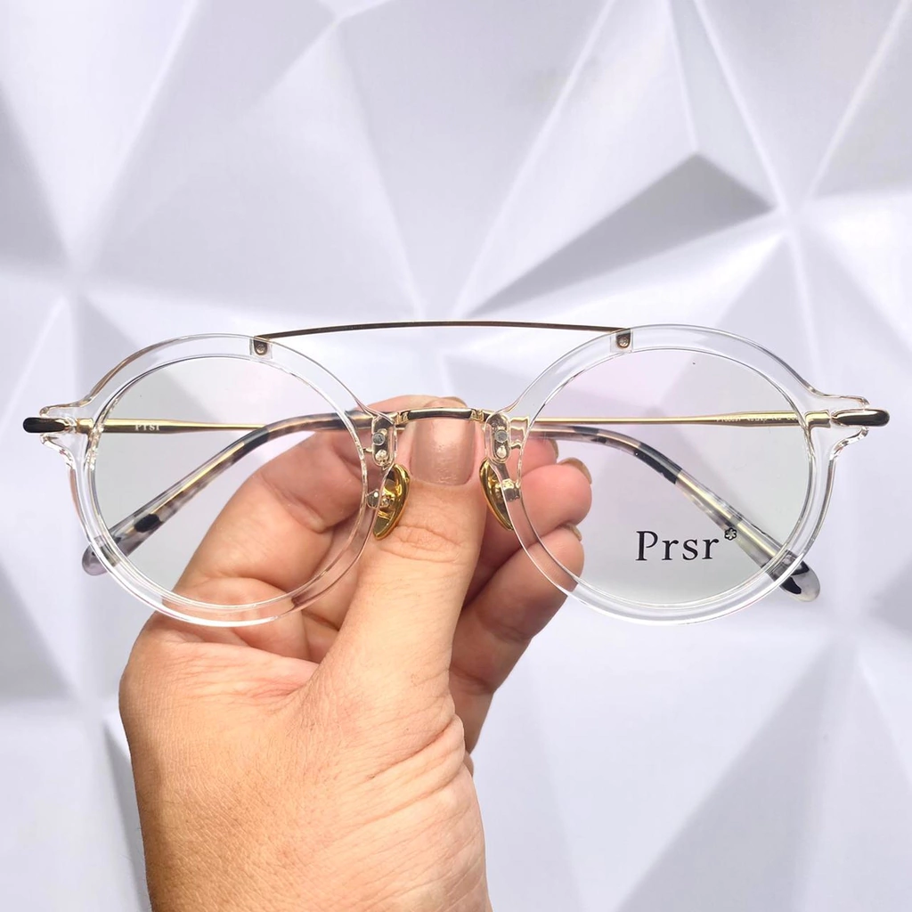 Descrição do produto: Armação feita em metal dourado e em acetato transparente, hastes feitas também em metal dourado.