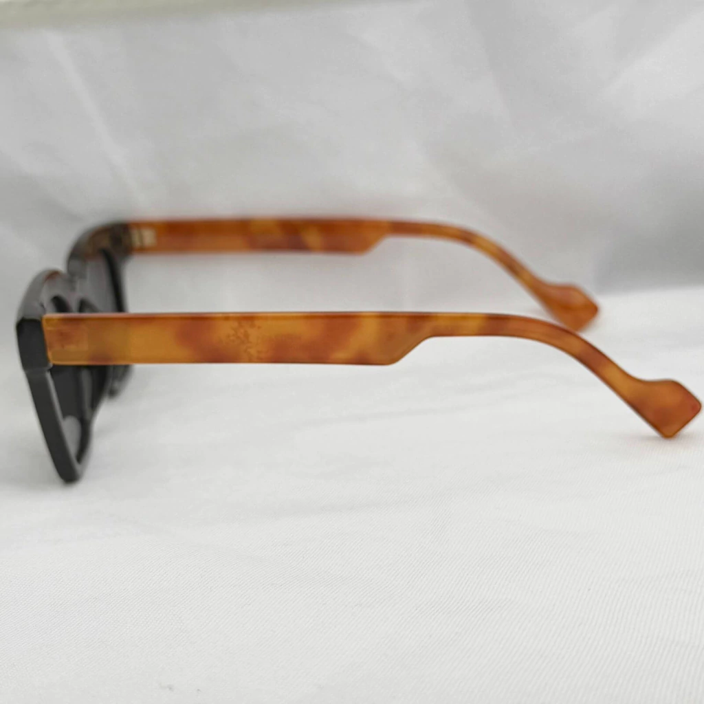 Descrição do produto: Armação em acetato na cor preta com hastes em caramelo. Lentes feitas em policarbonato na cor preta.