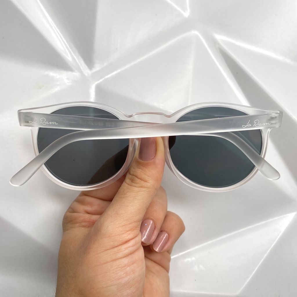 Descrição do produto: Armação em feita em acetato fosco transparente. Lentes feitas em policarbonato polalizadas na cor rose totalmente espelhadas