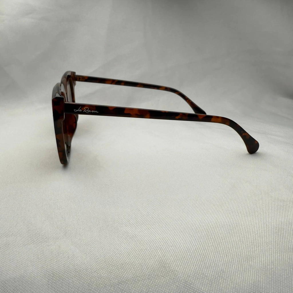 Armação em acetato na cor tartaruga, lentes feitas em policarbonato na cor marrom