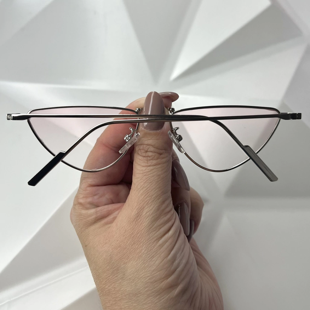 Armação feita em metal na cor prata. Lentes feitas em policarbonato na cor rosa com efeito degradê e forte transparência!