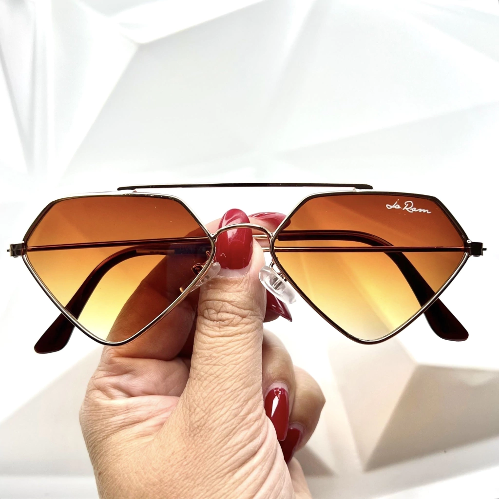 Armação feita em metal na cor dourada, lentes feitas em policarbonato na cor marrom degradê !